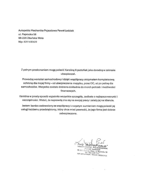Wszystkie rekomendacje, które otrzymujemy w formie papierowej, są dla nas ogromnym wyróżnieniem. Dlatego chcemy się nimi dzielić także tutaj – by każdy mógł zobaczyć, że za naszymi działaniami stoją konkretni ludzie i ich historie sukcesu.